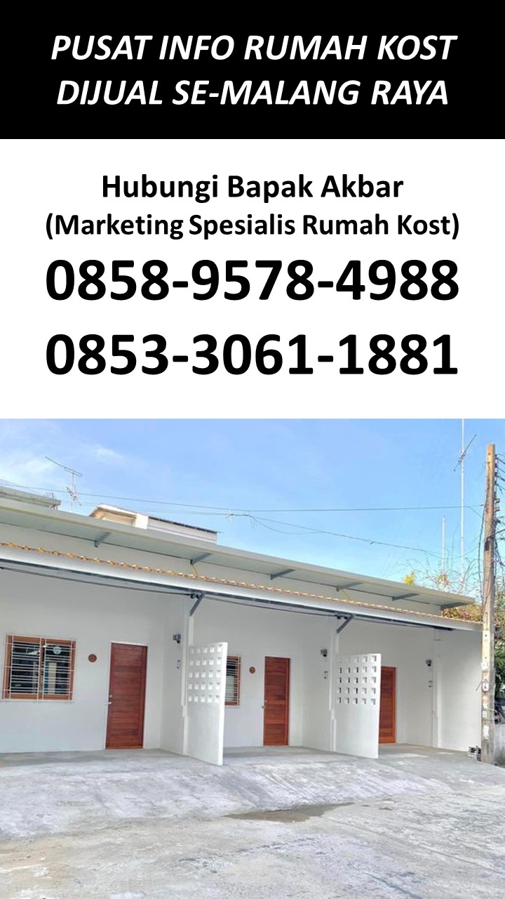 Bapak Akbar menyediakan beragam informasi tentang rumah kost dijual di Malang yang berada di kawasan strategis Dekat Universitas Brawijaya UB, Dekat Universitas Islam Negeri UIN Maulana Malik Ibrahim, Dekat Universitas Negeri UM, Dekat UPBJJ Universitas Terbuka, Dekat Universitas Gajayana UNIGA, Dekat Universitas Islam UNISMA, Dekat Universitas Kanjuruhan UNIKAMA, Dekat Universitas Kristen Cipta Wacana UKCW, Dekat Universitas Merdeka UNMER, Dekat Universitas Muhammadiyah UMM, Dekat Universitas Tribhuwana Tunggadewi UNITRI, Dekat Universitas Widyagama UWG, Dekat Universitas Wisnuwardhana, Dekat BINUS University, Dekat Politeknik Negeri POLINEMA, Dekat Politeknik Unisma, Dekat Politeknik Kota POLTEKOM, Dekat Politeknik Kesehatan Kementerian Kesehatan, Dekat Sekolah Tinggi Agama Islam Ma’had Aly Al-Hikam, Dekat Sekolah Tinggi Bahasa Asing, Dekat Sekolah Tinggi Filsafat Theologi STFT Widya Sasana, Dekat Sekolah Tinggi Teologi Salem, Dekat Sekolah Tinggi Teologi Satyabhakti, Dekat Sekolah Tinggi Ilmu Administrasi, Dekat STIE Indocakti, Dekat STIE Indonesia, Dekat STIE Kertanegara STIEKMA, Dekat STIE Koperasi STIEKOP, Dekat STIE kucecwara ABM, Dekat STIE Pemnas Indonesia, Dekat STIEKN Jaya Negara, Dekat STIKes Kendedes, Dekat Stikes Maharani, Dekat STIKES Widyagama Husada, Dekat Sekolah Tinggi Ilmu Hukum Sunan Giri, Dekat Sekolah Tinggi Informatika dan Komputer Indonesia STIKI, Dekat Sekolah Tinggi Pendidikan Agama Kristen STIPAK Duta Harapan, Dekat Sekolah Tinggi Ilmu Perikanan STIP, Dekat STISOSPOL Waskita Dharma, Dekat Sekolah Tinggi Pastoral IPI, Dekat STT Atlas Nusantara, Dekat STT Budi Utomo, Dekat STT, Dekat STT RRI, Dekat STMIK PPKIA Pradnya Paramita STIMATA, Dekat Akademi Analis Farmasi dan Makanan AKAFARMA Putra Indonesia, Dekat Akademi Analis Kesehatan, Dekat Akademi Farmasi AKFAR Putra Indonesia, Dekat Akademi Kebidanan Brawijaya Husada, Dekat Akademi Kebidanan Wira Husada Nusantara, Dekat Akademi Kebidanan Wijaya Kusuma, Dekat Akademi Keperawatan Panti Waluya, Dekat Akademi Pariwisata dan Perhotelan APARTEL Ganesha, Dekat Institut Teknologi Nasional ITN, Dekat IKIP Budi Utomo, Dekat Institut Pertanian, Dekat Institut Teknologi dan Bisnis Asia, Dekat Institut Teknologi Sains dan Kesehatan RS dr. Soepraoen Kesdam V