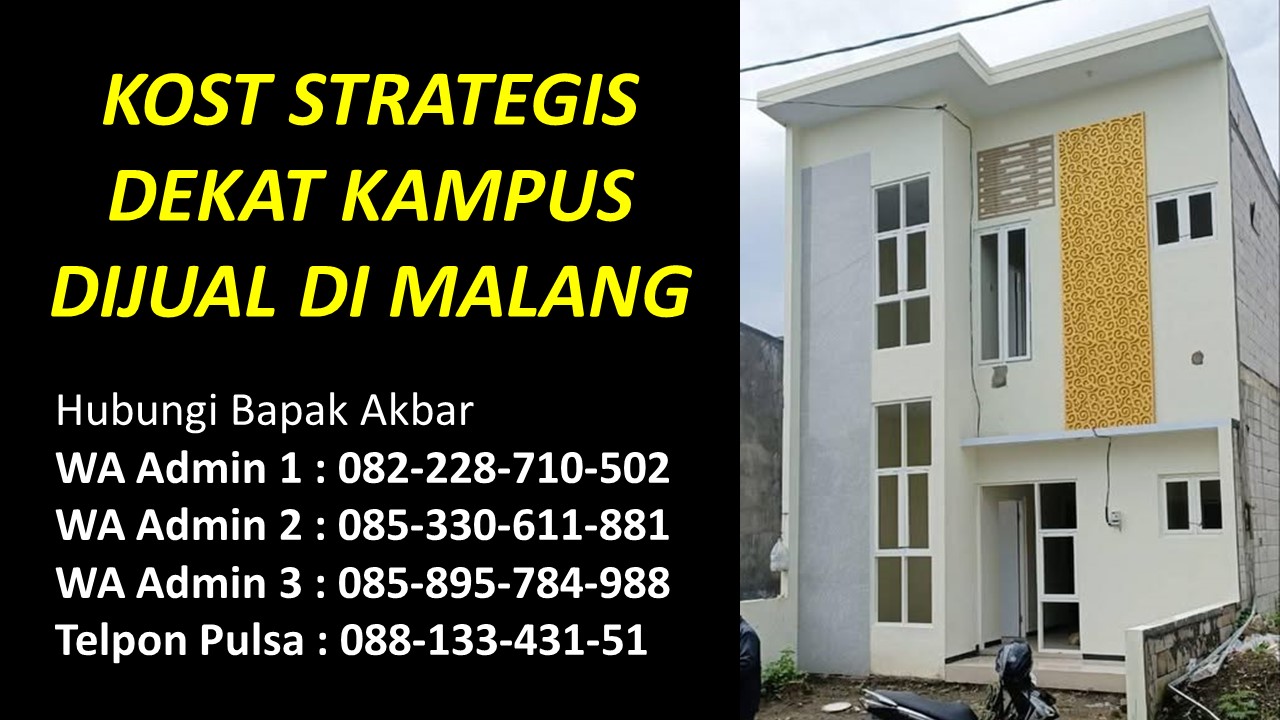 Bapak Akbar menyediakan beragam informasi tentang rumah kost dijual di Malang yang berada di kawasan strategis Dekat Universitas Brawijaya UB, Dekat Universitas Islam Negeri UIN Maulana Malik Ibrahim, Dekat Universitas Negeri UM, Dekat UPBJJ Universitas Terbuka, Dekat Universitas Gajayana UNIGA, Dekat Universitas Islam UNISMA, Dekat Universitas Kanjuruhan UNIKAMA, Dekat Universitas Kristen Cipta Wacana UKCW, Dekat Universitas Merdeka UNMER, Dekat Universitas Muhammadiyah UMM, Dekat Universitas Tribhuwana Tunggadewi UNITRI, Dekat Universitas Widyagama UWG, Dekat Universitas Wisnuwardhana, Dekat BINUS University, Dekat Politeknik Negeri POLINEMA, Dekat Politeknik Unisma, Dekat Politeknik Kota POLTEKOM, Dekat Politeknik Kesehatan Kementerian Kesehatan, Dekat Sekolah Tinggi Agama Islam Ma’had Aly Al-Hikam, Dekat Sekolah Tinggi Bahasa Asing, Dekat Sekolah Tinggi Filsafat Theologi STFT Widya Sasana, Dekat Sekolah Tinggi Teologi Salem, Dekat Sekolah Tinggi Teologi Satyabhakti, Dekat Sekolah Tinggi Ilmu Administrasi, Dekat STIE Indocakti, Dekat STIE Indonesia, Dekat STIE Kertanegara STIEKMA, Dekat STIE Koperasi STIEKOP, Dekat STIE kucecwara ABM, Dekat STIE Pemnas Indonesia, Dekat STIEKN Jaya Negara, Dekat STIKes Kendedes, Dekat Stikes Maharani, Dekat STIKES Widyagama Husada, Dekat Sekolah Tinggi Ilmu Hukum Sunan Giri, Dekat Sekolah Tinggi Informatika dan Komputer Indonesia STIKI, Dekat Sekolah Tinggi Pendidikan Agama Kristen STIPAK Duta Harapan, Dekat Sekolah Tinggi Ilmu Perikanan STIP, Dekat STISOSPOL Waskita Dharma, Dekat Sekolah Tinggi Pastoral IPI, Dekat STT Atlas Nusantara, Dekat STT Budi Utomo, Dekat STT, Dekat STT RRI, Dekat STMIK PPKIA Pradnya Paramita STIMATA, Dekat Akademi Analis Farmasi dan Makanan AKAFARMA Putra Indonesia, Dekat Akademi Analis Kesehatan, Dekat Akademi Farmasi AKFAR Putra Indonesia, Dekat Akademi Kebidanan Brawijaya Husada, Dekat Akademi Kebidanan Wira Husada Nusantara, Dekat Akademi Kebidanan Wijaya Kusuma, Dekat Akademi Keperawatan Panti Waluya, Dekat Akademi Pariwisata dan Perhotelan APARTEL Ganesha, Dekat Institut Teknologi Nasional ITN, Dekat IKIP Budi Utomo, Dekat Institut Pertanian, Dekat Institut Teknologi dan Bisnis Asia, Dekat Institut Teknologi Sains dan Kesehatan RS dr. Soepraoen Kesdam V