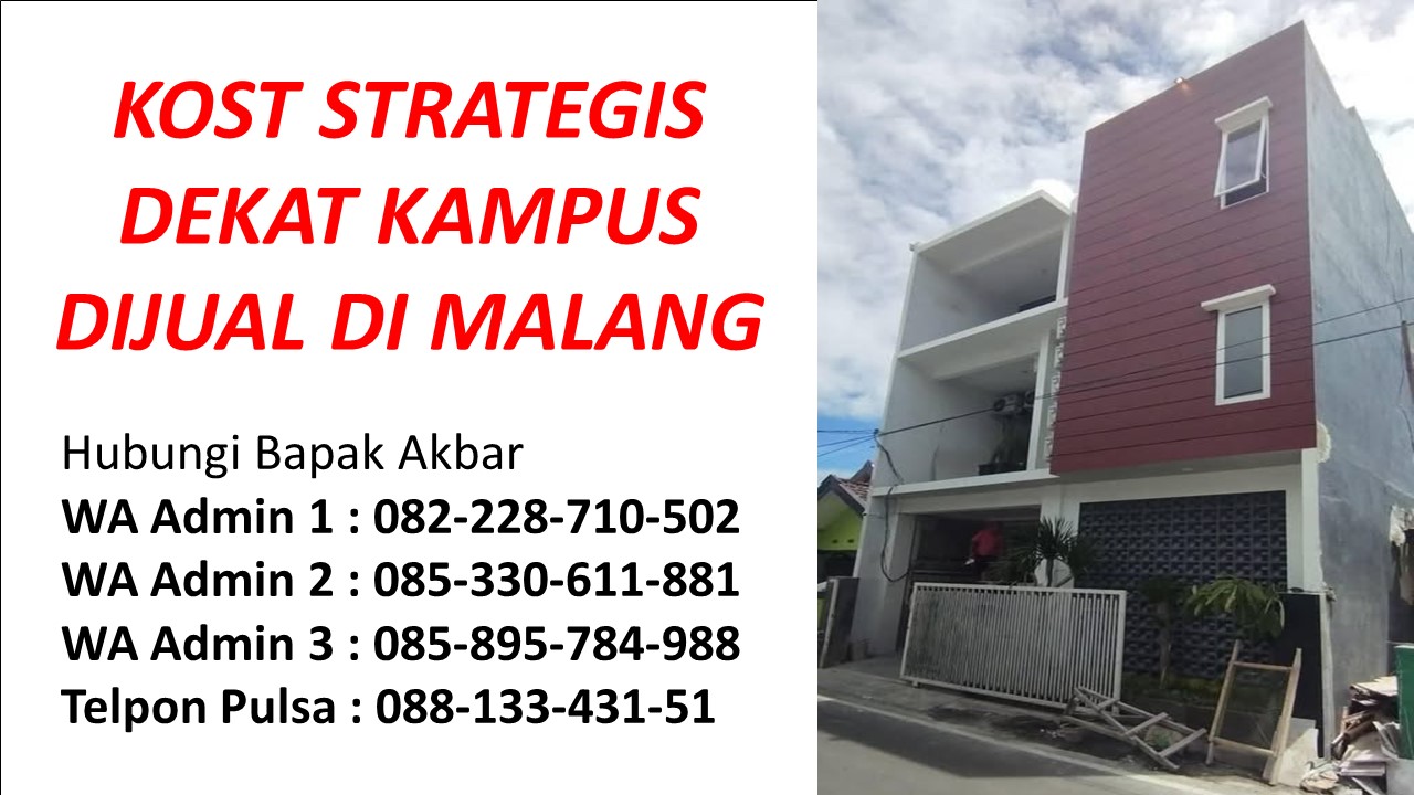 Bapak Akbar menyediakan beragam informasi tentang rumah kost dijual di Malang yang berada di kawasan strategis Dekat Universitas Brawijaya UB, Dekat Universitas Islam Negeri UIN Maulana Malik Ibrahim, Dekat Universitas Negeri UM, Dekat UPBJJ Universitas Terbuka, Dekat Universitas Gajayana UNIGA, Dekat Universitas Islam UNISMA, Dekat Universitas Kanjuruhan UNIKAMA, Dekat Universitas Kristen Cipta Wacana UKCW, Dekat Universitas Merdeka UNMER, Dekat Universitas Muhammadiyah UMM, Dekat Universitas Tribhuwana Tunggadewi UNITRI, Dekat Universitas Widyagama UWG, Dekat Universitas Wisnuwardhana, Dekat BINUS University, Dekat Politeknik Negeri POLINEMA, Dekat Politeknik Unisma, Dekat Politeknik Kota POLTEKOM, Dekat Politeknik Kesehatan Kementerian Kesehatan, Dekat Sekolah Tinggi Agama Islam Ma’had Aly Al-Hikam, Dekat Sekolah Tinggi Bahasa Asing, Dekat Sekolah Tinggi Filsafat Theologi STFT Widya Sasana, Dekat Sekolah Tinggi Teologi Salem, Dekat Sekolah Tinggi Teologi Satyabhakti, Dekat Sekolah Tinggi Ilmu Administrasi, Dekat STIE Indocakti, Dekat STIE Indonesia, Dekat STIE Kertanegara STIEKMA, Dekat STIE Koperasi STIEKOP, Dekat STIE kucecwara ABM, Dekat STIE Pemnas Indonesia, Dekat STIEKN Jaya Negara, Dekat STIKes Kendedes, Dekat Stikes Maharani, Dekat STIKES Widyagama Husada, Dekat Sekolah Tinggi Ilmu Hukum Sunan Giri, Dekat Sekolah Tinggi Informatika dan Komputer Indonesia STIKI, Dekat Sekolah Tinggi Pendidikan Agama Kristen STIPAK Duta Harapan, Dekat Sekolah Tinggi Ilmu Perikanan STIP, Dekat STISOSPOL Waskita Dharma, Dekat Sekolah Tinggi Pastoral IPI, Dekat STT Atlas Nusantara, Dekat STT Budi Utomo, Dekat STT, Dekat STT RRI, Dekat STMIK PPKIA Pradnya Paramita STIMATA, Dekat Akademi Analis Farmasi dan Makanan AKAFARMA Putra Indonesia, Dekat Akademi Analis Kesehatan, Dekat Akademi Farmasi AKFAR Putra Indonesia, Dekat Akademi Kebidanan Brawijaya Husada, Dekat Akademi Kebidanan Wira Husada Nusantara, Dekat Akademi Kebidanan Wijaya Kusuma, Dekat Akademi Keperawatan Panti Waluya, Dekat Akademi Pariwisata dan Perhotelan APARTEL Ganesha, Dekat Institut Teknologi Nasional ITN, Dekat IKIP Budi Utomo, Dekat Institut Pertanian, Dekat Institut Teknologi dan Bisnis Asia, Dekat Institut Teknologi Sains dan Kesehatan RS dr. Soepraoen Kesdam V