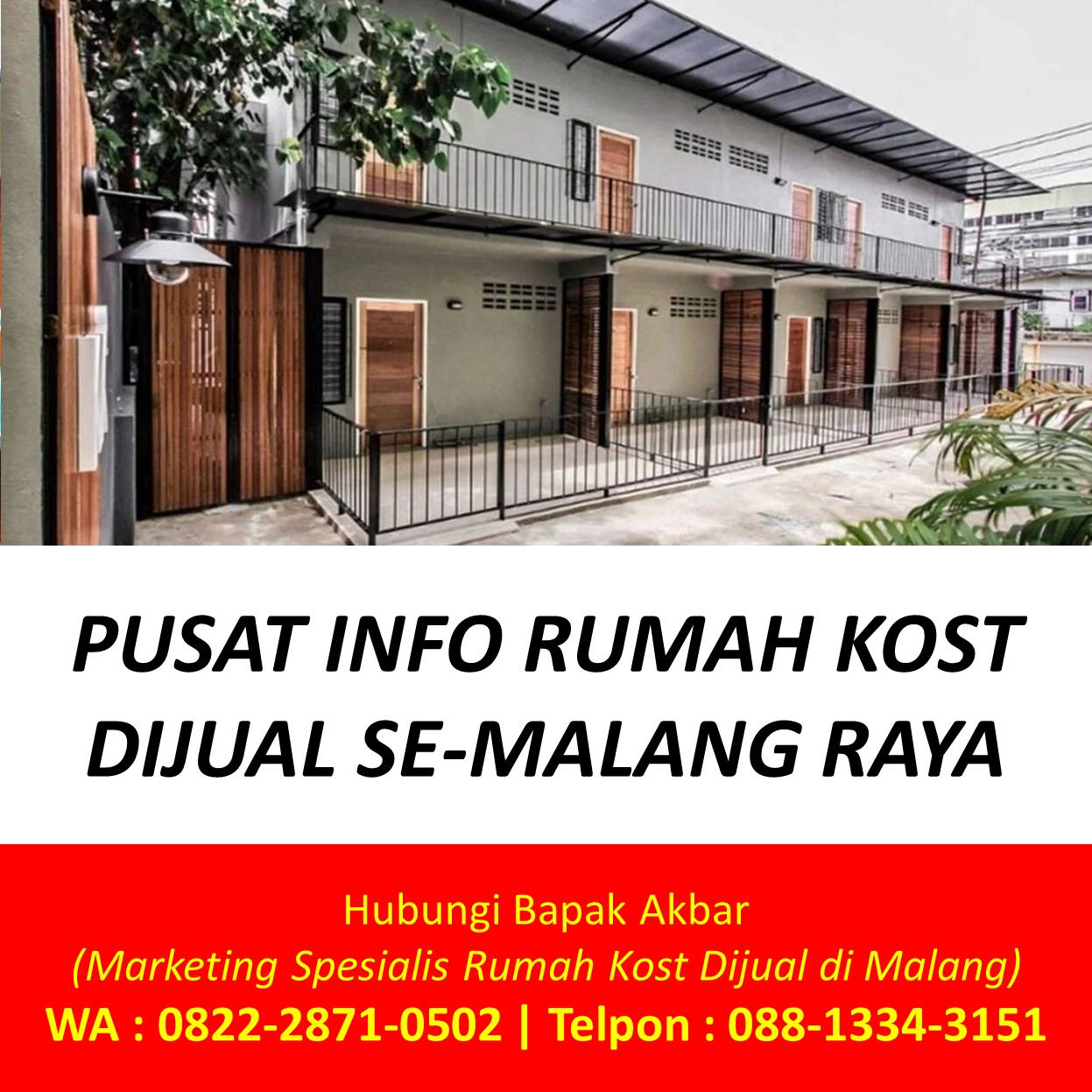 Bapak Akbar menyediakan beragam informasi tentang rumah kost dijual di Malang yang berada di kawasan strategis Dekat Universitas Brawijaya UB, Dekat Universitas Islam Negeri UIN Maulana Malik Ibrahim, Dekat Universitas Negeri UM, Dekat UPBJJ Universitas Terbuka, Dekat Universitas Gajayana UNIGA, Dekat Universitas Islam UNISMA, Dekat Universitas Kanjuruhan UNIKAMA, Dekat Universitas Kristen Cipta Wacana UKCW, Dekat Universitas Merdeka UNMER, Dekat Universitas Muhammadiyah UMM, Dekat Universitas Tribhuwana Tunggadewi UNITRI, Dekat Universitas Widyagama UWG, Dekat Universitas Wisnuwardhana, Dekat BINUS University, Dekat Politeknik Negeri POLINEMA, Dekat Politeknik Unisma, Dekat Politeknik Kota POLTEKOM, Dekat Politeknik Kesehatan Kementerian Kesehatan, Dekat Sekolah Tinggi Agama Islam Ma’had Aly Al-Hikam, Dekat Sekolah Tinggi Bahasa Asing, Dekat Sekolah Tinggi Filsafat Theologi STFT Widya Sasana, Dekat Sekolah Tinggi Teologi Salem, Dekat Sekolah Tinggi Teologi Satyabhakti, Dekat Sekolah Tinggi Ilmu Administrasi, Dekat STIE Indocakti, Dekat STIE Indonesia, Dekat STIE Kertanegara STIEKMA, Dekat STIE Koperasi STIEKOP, Dekat STIE kucecwara ABM, Dekat STIE Pemnas Indonesia, Dekat STIEKN Jaya Negara, Dekat STIKes Kendedes, Dekat Stikes Maharani, Dekat STIKES Widyagama Husada, Dekat Sekolah Tinggi Ilmu Hukum Sunan Giri, Dekat Sekolah Tinggi Informatika dan Komputer Indonesia STIKI, Dekat Sekolah Tinggi Pendidikan Agama Kristen STIPAK Duta Harapan, Dekat Sekolah Tinggi Ilmu Perikanan STIP, Dekat STISOSPOL Waskita Dharma, Dekat Sekolah Tinggi Pastoral IPI, Dekat STT Atlas Nusantara, Dekat STT Budi Utomo, Dekat STT, Dekat STT RRI, Dekat STMIK PPKIA Pradnya Paramita STIMATA, Dekat Akademi Analis Farmasi dan Makanan AKAFARMA Putra Indonesia, Dekat Akademi Analis Kesehatan, Dekat Akademi Farmasi AKFAR Putra Indonesia, Dekat Akademi Kebidanan Brawijaya Husada, Dekat Akademi Kebidanan Wira Husada Nusantara, Dekat Akademi Kebidanan Wijaya Kusuma, Dekat Akademi Keperawatan Panti Waluya, Dekat Akademi Pariwisata dan Perhotelan APARTEL Ganesha, Dekat Institut Teknologi Nasional ITN, Dekat IKIP Budi Utomo, Dekat Institut Pertanian, Dekat Institut Teknologi dan Bisnis Asia, Dekat Institut Teknologi Sains dan Kesehatan RS dr. Soepraoen Kesdam V