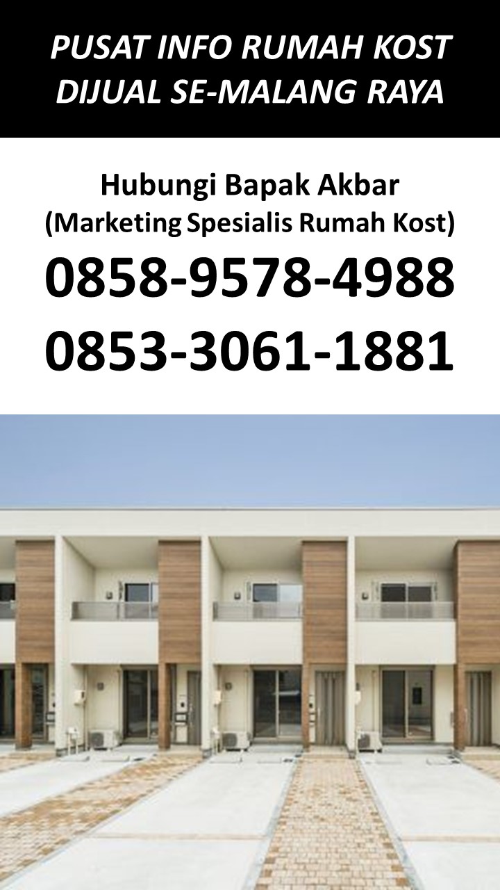 Bapak Akbar menyediakan beragam informasi tentang rumah kost dijual di Malang yang berada di kawasan strategis Dekat Universitas Brawijaya UB, Dekat Universitas Islam Negeri UIN Maulana Malik Ibrahim, Dekat Universitas Negeri UM, Dekat UPBJJ Universitas Terbuka, Dekat Universitas Gajayana UNIGA, Dekat Universitas Islam UNISMA, Dekat Universitas Kanjuruhan UNIKAMA, Dekat Universitas Kristen Cipta Wacana UKCW, Dekat Universitas Merdeka UNMER, Dekat Universitas Muhammadiyah UMM, Dekat Universitas Tribhuwana Tunggadewi UNITRI, Dekat Universitas Widyagama UWG, Dekat Universitas Wisnuwardhana, Dekat BINUS University, Dekat Politeknik Negeri POLINEMA, Dekat Politeknik Unisma, Dekat Politeknik Kota POLTEKOM, Dekat Politeknik Kesehatan Kementerian Kesehatan, Dekat Sekolah Tinggi Agama Islam Ma’had Aly Al-Hikam, Dekat Sekolah Tinggi Bahasa Asing, Dekat Sekolah Tinggi Filsafat Theologi STFT Widya Sasana, Dekat Sekolah Tinggi Teologi Salem, Dekat Sekolah Tinggi Teologi Satyabhakti, Dekat Sekolah Tinggi Ilmu Administrasi, Dekat STIE Indocakti, Dekat STIE Indonesia, Dekat STIE Kertanegara STIEKMA, Dekat STIE Koperasi STIEKOP, Dekat STIE kucecwara ABM, Dekat STIE Pemnas Indonesia, Dekat STIEKN Jaya Negara, Dekat STIKes Kendedes, Dekat Stikes Maharani, Dekat STIKES Widyagama Husada, Dekat Sekolah Tinggi Ilmu Hukum Sunan Giri, Dekat Sekolah Tinggi Informatika dan Komputer Indonesia STIKI, Dekat Sekolah Tinggi Pendidikan Agama Kristen STIPAK Duta Harapan, Dekat Sekolah Tinggi Ilmu Perikanan STIP, Dekat STISOSPOL Waskita Dharma, Dekat Sekolah Tinggi Pastoral IPI, Dekat STT Atlas Nusantara, Dekat STT Budi Utomo, Dekat STT, Dekat STT RRI, Dekat STMIK PPKIA Pradnya Paramita STIMATA, Dekat Akademi Analis Farmasi dan Makanan AKAFARMA Putra Indonesia, Dekat Akademi Analis Kesehatan, Dekat Akademi Farmasi AKFAR Putra Indonesia, Dekat Akademi Kebidanan Brawijaya Husada, Dekat Akademi Kebidanan Wira Husada Nusantara, Dekat Akademi Kebidanan Wijaya Kusuma, Dekat Akademi Keperawatan Panti Waluya, Dekat Akademi Pariwisata dan Perhotelan APARTEL Ganesha, Dekat Institut Teknologi Nasional ITN, Dekat IKIP Budi Utomo, Dekat Institut Pertanian, Dekat Institut Teknologi dan Bisnis Asia, Dekat Institut Teknologi Sains dan Kesehatan RS dr. Soepraoen Kesdam V