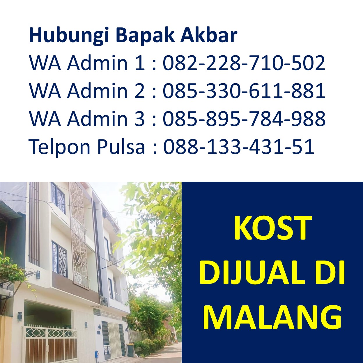 Bapak Akbar adalah seorang marketing properti spesialis Rumah Kos, Kos Kosan, Kos-Kosan, Kost Kosan, Indekos dijual di wilayah Malang
