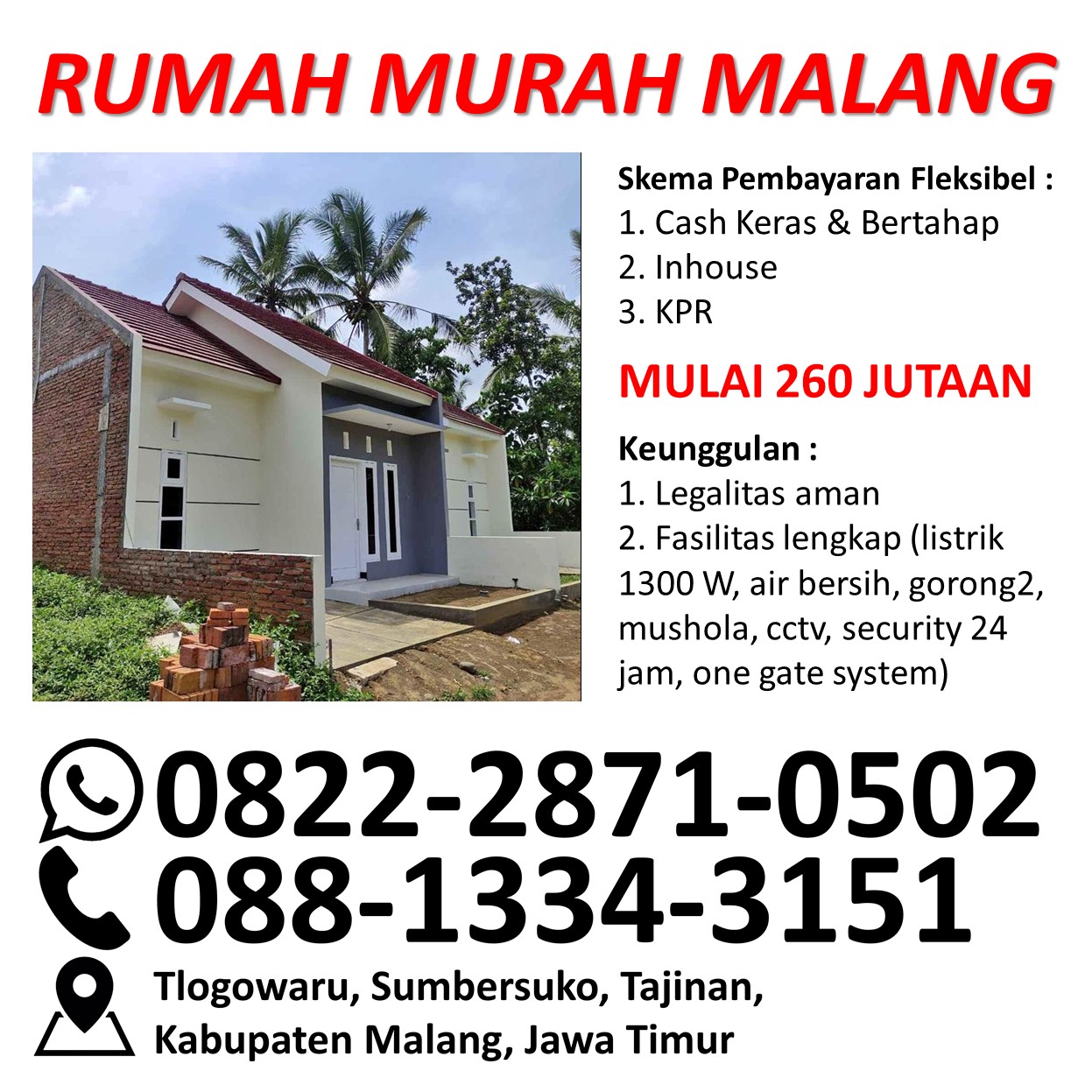 WA 0822-2871-0502 Rumah Di Jual Kabupaten Malang Bisa Angsuran 1 Tahun