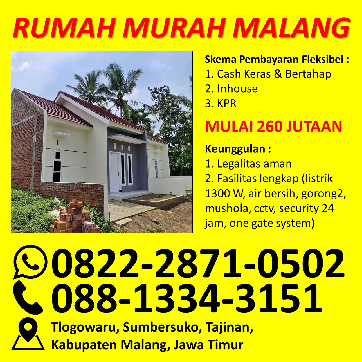 WA 0822-2871-0502 Rumah Di Jual Kabupaten Malang Bisa Angsuran 2 Tahun