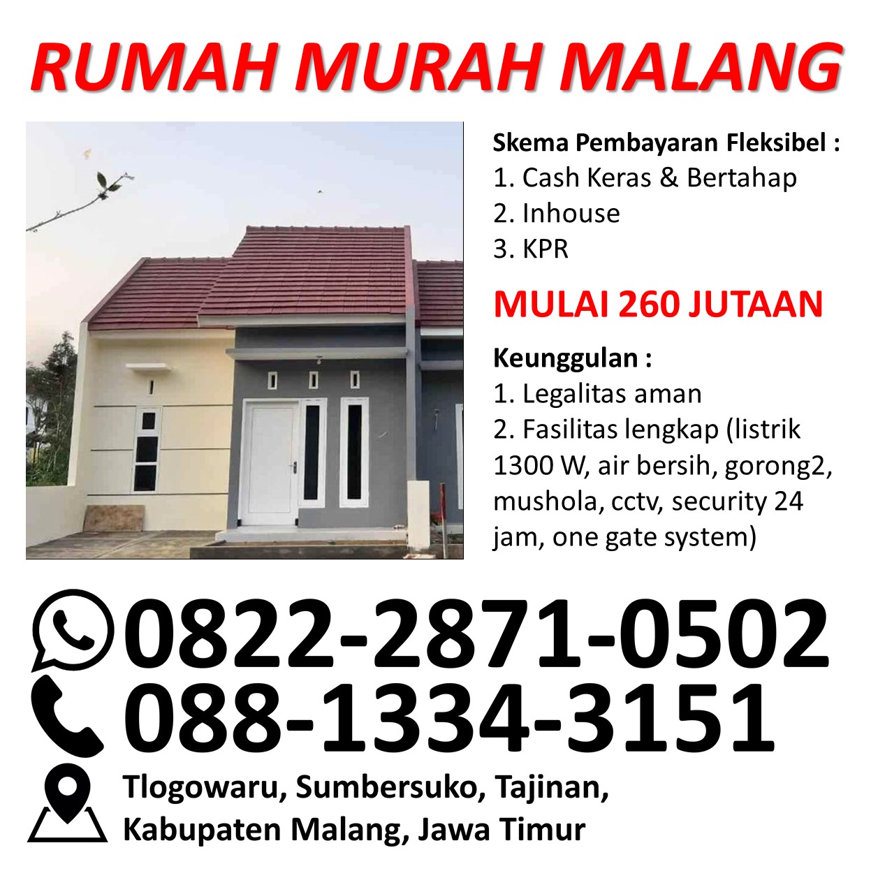 WA 0822-2871-0502 Rumah Di Jual Kabupaten Malang Bisa KPR