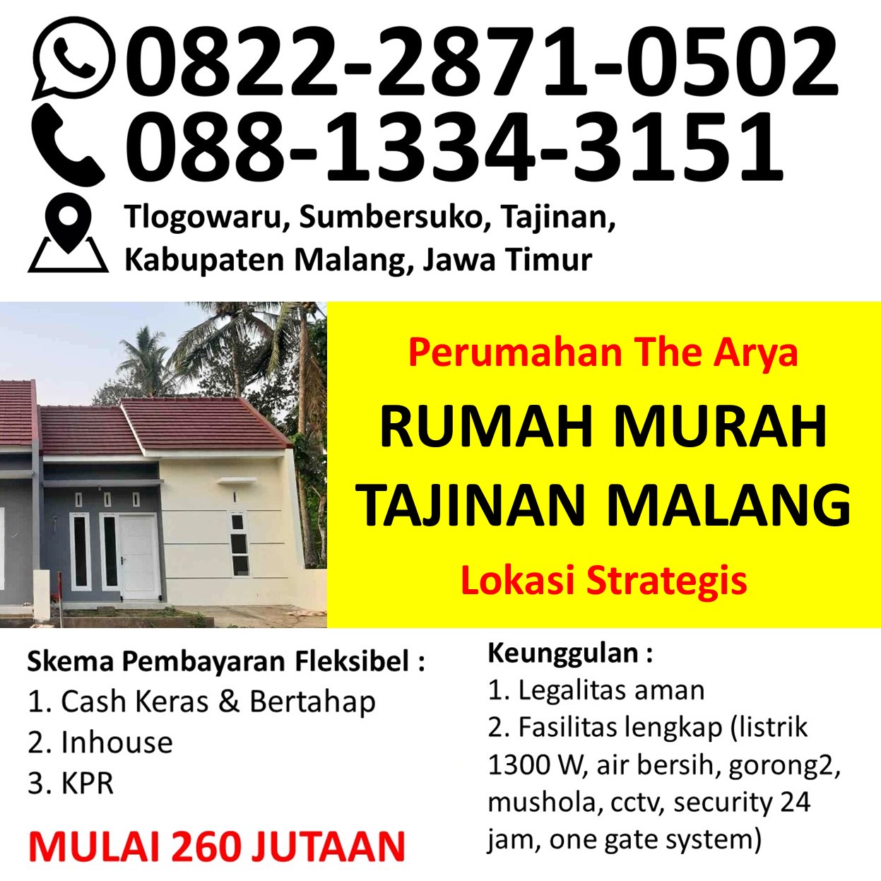 Perumahan Murah “The Arya”, menyediakan rumah mulai harga 268 jutaan (harga akan terus naik jika tidak segera booking unit)