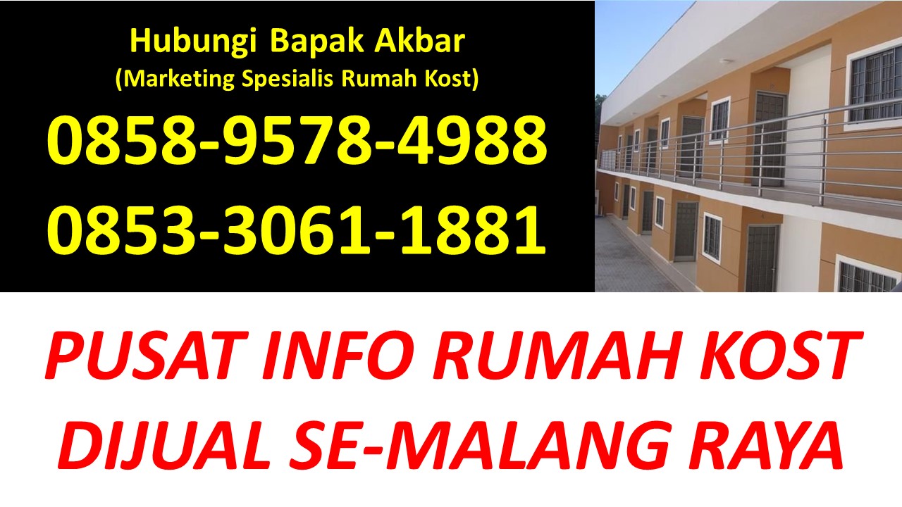 Bapak Akbar menyediakan beragam informasi tentang rumah kost dijual di Malang yang berada di kawasan strategis Dekat Universitas Brawijaya UB, Dekat Universitas Islam Negeri UIN Maulana Malik Ibrahim, Dekat Universitas Negeri UM, Dekat UPBJJ Universitas Terbuka, Dekat Universitas Gajayana UNIGA, Dekat Universitas Islam UNISMA, Dekat Universitas Kanjuruhan UNIKAMA, Dekat Universitas Kristen Cipta Wacana UKCW, Dekat Universitas Merdeka UNMER, Dekat Universitas Muhammadiyah UMM, Dekat Universitas Tribhuwana Tunggadewi UNITRI, Dekat Universitas Widyagama UWG, Dekat Universitas Wisnuwardhana, Dekat BINUS University, Dekat Politeknik Negeri POLINEMA, Dekat Politeknik Unisma, Dekat Politeknik Kota POLTEKOM, Dekat Politeknik Kesehatan Kementerian Kesehatan, Dekat Sekolah Tinggi Agama Islam Ma’had Aly Al-Hikam, Dekat Sekolah Tinggi Bahasa Asing, Dekat Sekolah Tinggi Filsafat Theologi STFT Widya Sasana, Dekat Sekolah Tinggi Teologi Salem, Dekat Sekolah Tinggi Teologi Satyabhakti, Dekat Sekolah Tinggi Ilmu Administrasi, Dekat STIE Indocakti, Dekat STIE Indonesia, Dekat STIE Kertanegara STIEKMA, Dekat STIE Koperasi STIEKOP, Dekat STIE kucecwara ABM, Dekat STIE Pemnas Indonesia, Dekat STIEKN Jaya Negara, Dekat STIKes Kendedes, Dekat Stikes Maharani, Dekat STIKES Widyagama Husada, Dekat Sekolah Tinggi Ilmu Hukum Sunan Giri, Dekat Sekolah Tinggi Informatika dan Komputer Indonesia STIKI, Dekat Sekolah Tinggi Pendidikan Agama Kristen STIPAK Duta Harapan, Dekat Sekolah Tinggi Ilmu Perikanan STIP, Dekat STISOSPOL Waskita Dharma, Dekat Sekolah Tinggi Pastoral IPI, Dekat STT Atlas Nusantara, Dekat STT Budi Utomo, Dekat STT, Dekat STT RRI, Dekat STMIK PPKIA Pradnya Paramita STIMATA, Dekat Akademi Analis Farmasi dan Makanan AKAFARMA Putra Indonesia, Dekat Akademi Analis Kesehatan, Dekat Akademi Farmasi AKFAR Putra Indonesia, Dekat Akademi Kebidanan Brawijaya Husada, Dekat Akademi Kebidanan Wira Husada Nusantara, Dekat Akademi Kebidanan Wijaya Kusuma, Dekat Akademi Keperawatan Panti Waluya, Dekat Akademi Pariwisata dan Perhotelan APARTEL Ganesha, Dekat Institut Teknologi Nasional ITN, Dekat IKIP Budi Utomo, Dekat Institut Pertanian, Dekat Institut Teknologi dan Bisnis Asia, Dekat Institut Teknologi Sains dan Kesehatan RS dr. Soepraoen Kesdam V