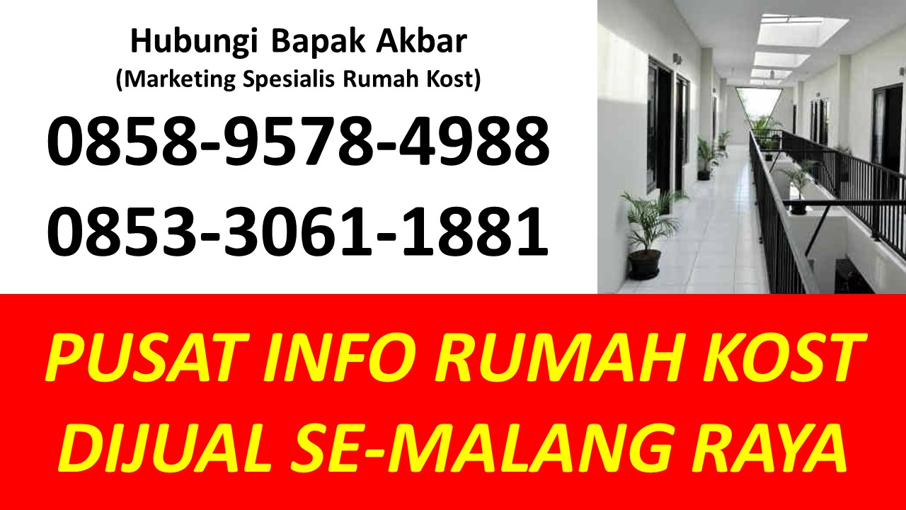 Bapak Akbar menyediakan beragam informasi tentang rumah kost dijual di Malang yang berada di kawasan strategis Dekat Universitas Brawijaya UB, Dekat Universitas Islam Negeri UIN Maulana Malik Ibrahim, Dekat Universitas Negeri UM, Dekat UPBJJ Universitas Terbuka, Dekat Universitas Gajayana UNIGA, Dekat Universitas Islam UNISMA, Dekat Universitas Kanjuruhan UNIKAMA, Dekat Universitas Kristen Cipta Wacana UKCW, Dekat Universitas Merdeka UNMER, Dekat Universitas Muhammadiyah UMM, Dekat Universitas Tribhuwana Tunggadewi UNITRI, Dekat Universitas Widyagama UWG, Dekat Universitas Wisnuwardhana, Dekat BINUS University, Dekat Politeknik Negeri POLINEMA, Dekat Politeknik Unisma, Dekat Politeknik Kota POLTEKOM, Dekat Politeknik Kesehatan Kementerian Kesehatan, Dekat Sekolah Tinggi Agama Islam Ma’had Aly Al-Hikam, Dekat Sekolah Tinggi Bahasa Asing, Dekat Sekolah Tinggi Filsafat Theologi STFT Widya Sasana, Dekat Sekolah Tinggi Teologi Salem, Dekat Sekolah Tinggi Teologi Satyabhakti, Dekat Sekolah Tinggi Ilmu Administrasi, Dekat STIE Indocakti, Dekat STIE Indonesia, Dekat STIE Kertanegara STIEKMA, Dekat STIE Koperasi STIEKOP, Dekat STIE kucecwara ABM, Dekat STIE Pemnas Indonesia, Dekat STIEKN Jaya Negara, Dekat STIKes Kendedes, Dekat Stikes Maharani, Dekat STIKES Widyagama Husada, Dekat Sekolah Tinggi Ilmu Hukum Sunan Giri, Dekat Sekolah Tinggi Informatika dan Komputer Indonesia STIKI, Dekat Sekolah Tinggi Pendidikan Agama Kristen STIPAK Duta Harapan, Dekat Sekolah Tinggi Ilmu Perikanan STIP, Dekat STISOSPOL Waskita Dharma, Dekat Sekolah Tinggi Pastoral IPI, Dekat STT Atlas Nusantara, Dekat STT Budi Utomo, Dekat STT, Dekat STT RRI, Dekat STMIK PPKIA Pradnya Paramita STIMATA, Dekat Akademi Analis Farmasi dan Makanan AKAFARMA Putra Indonesia, Dekat Akademi Analis Kesehatan, Dekat Akademi Farmasi AKFAR Putra Indonesia, Dekat Akademi Kebidanan Brawijaya Husada, Dekat Akademi Kebidanan Wira Husada Nusantara, Dekat Akademi Kebidanan Wijaya Kusuma, Dekat Akademi Keperawatan Panti Waluya, Dekat Akademi Pariwisata dan Perhotelan APARTEL Ganesha, Dekat Institut Teknologi Nasional ITN, Dekat IKIP Budi Utomo, Dekat Institut Pertanian, Dekat Institut Teknologi dan Bisnis Asia, Dekat Institut Teknologi Sains dan Kesehatan RS dr. Soepraoen Kesdam V