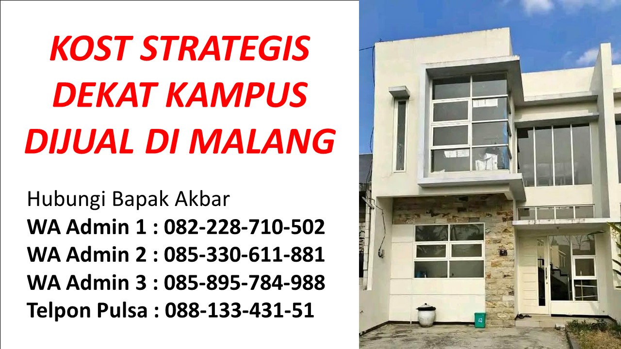 Bapak Akbar menyediakan beragam informasi tentang rumah kost dijual di Malang yang berada di kawasan strategis Dekat Universitas Brawijaya UB, Dekat Universitas Islam Negeri UIN Maulana Malik Ibrahim, Dekat Universitas Negeri UM, Dekat UPBJJ Universitas Terbuka, Dekat Universitas Gajayana UNIGA, Dekat Universitas Islam UNISMA, Dekat Universitas Kanjuruhan UNIKAMA, Dekat Universitas Kristen Cipta Wacana UKCW, Dekat Universitas Merdeka UNMER, Dekat Universitas Muhammadiyah UMM, Dekat Universitas Tribhuwana Tunggadewi UNITRI, Dekat Universitas Widyagama UWG, Dekat Universitas Wisnuwardhana, Dekat BINUS University, Dekat Politeknik Negeri POLINEMA, Dekat Politeknik Unisma, Dekat Politeknik Kota POLTEKOM, Dekat Politeknik Kesehatan Kementerian Kesehatan, Dekat Sekolah Tinggi Agama Islam Ma’had Aly Al-Hikam, Dekat Sekolah Tinggi Bahasa Asing, Dekat Sekolah Tinggi Filsafat Theologi STFT Widya Sasana, Dekat Sekolah Tinggi Teologi Salem, Dekat Sekolah Tinggi Teologi Satyabhakti, Dekat Sekolah Tinggi Ilmu Administrasi, Dekat STIE Indocakti, Dekat STIE Indonesia, Dekat STIE Kertanegara STIEKMA, Dekat STIE Koperasi STIEKOP, Dekat STIE kucecwara ABM, Dekat STIE Pemnas Indonesia, Dekat STIEKN Jaya Negara, Dekat STIKes Kendedes, Dekat Stikes Maharani, Dekat STIKES Widyagama Husada, Dekat Sekolah Tinggi Ilmu Hukum Sunan Giri, Dekat Sekolah Tinggi Informatika dan Komputer Indonesia STIKI, Dekat Sekolah Tinggi Pendidikan Agama Kristen STIPAK Duta Harapan, Dekat Sekolah Tinggi Ilmu Perikanan STIP, Dekat STISOSPOL Waskita Dharma, Dekat Sekolah Tinggi Pastoral IPI, Dekat STT Atlas Nusantara, Dekat STT Budi Utomo, Dekat STT, Dekat STT RRI, Dekat STMIK PPKIA Pradnya Paramita STIMATA, Dekat Akademi Analis Farmasi dan Makanan AKAFARMA Putra Indonesia, Dekat Akademi Analis Kesehatan, Dekat Akademi Farmasi AKFAR Putra Indonesia, Dekat Akademi Kebidanan Brawijaya Husada, Dekat Akademi Kebidanan Wira Husada Nusantara, Dekat Akademi Kebidanan Wijaya Kusuma, Dekat Akademi Keperawatan Panti Waluya, Dekat Akademi Pariwisata dan Perhotelan APARTEL Ganesha, Dekat Institut Teknologi Nasional ITN, Dekat IKIP Budi Utomo, Dekat Institut Pertanian, Dekat Institut Teknologi dan Bisnis Asia, Dekat Institut Teknologi Sains dan Kesehatan RS dr. Soepraoen Kesdam V