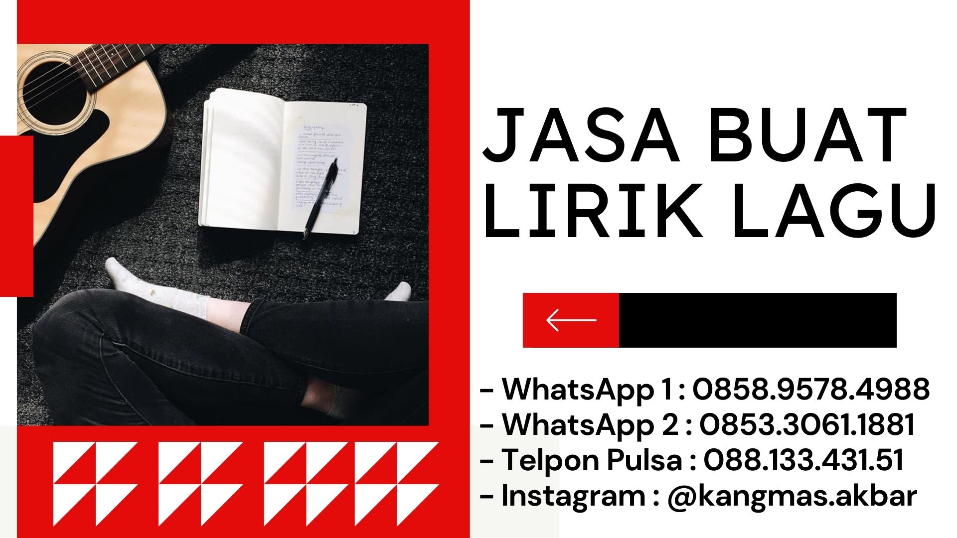 Mas Akbar siap membuatkan lirik lagu untuk berbagai genre musik (Indie, Jazz, Reggae, EDM, Hiphop, Keroncong, Pop, Rock, Dangdut)