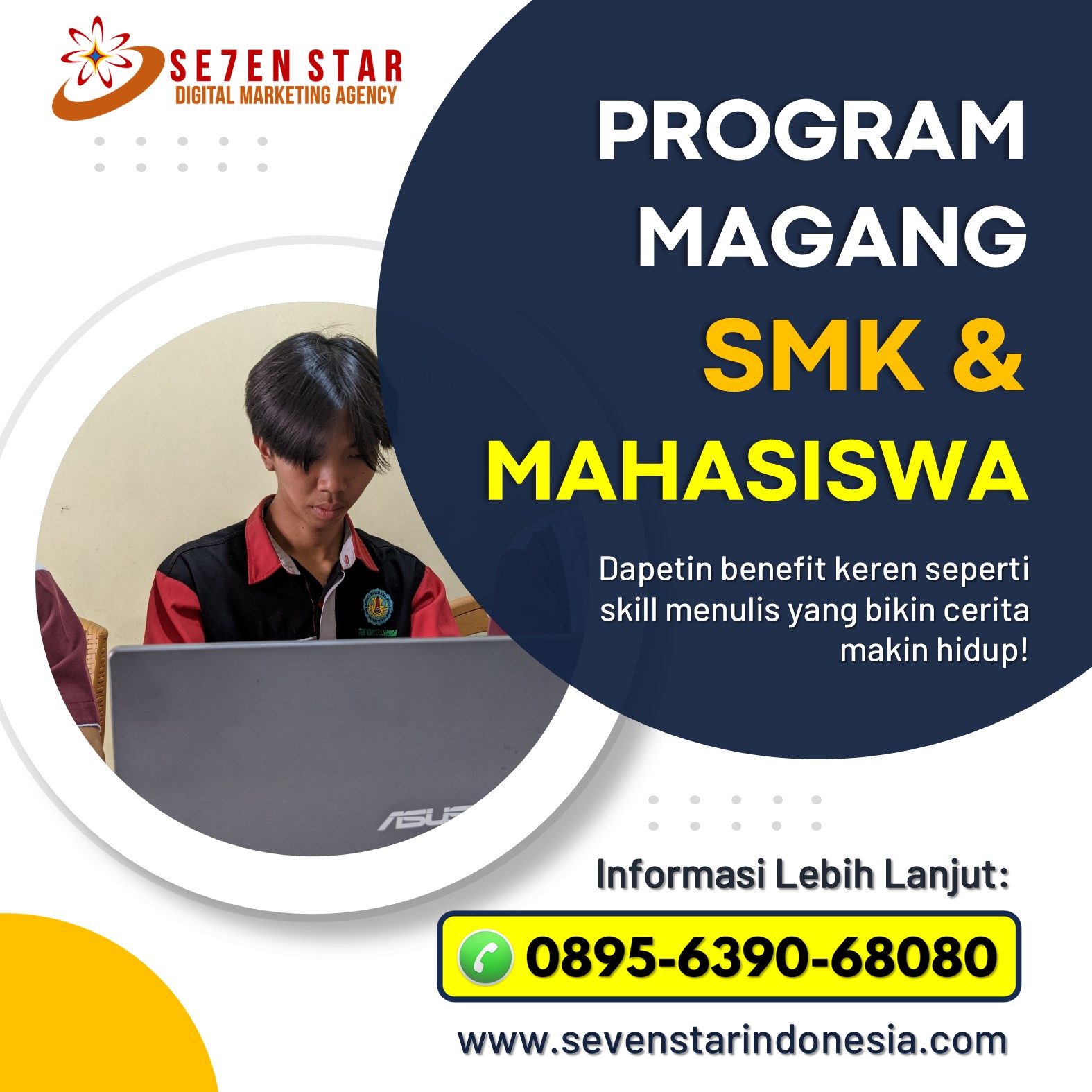 Hubungi 0895-6390-68080 untuk informasi lengkap dan pendaftaran program magang. Bersama Sevenstar Digital ID, mari wujudkan masa depan kerja yang siap saing dan berkompeten.