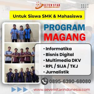 WA 0895-6390-68080, Bagi siswa SMK yang mencari lowongan magang di Malang, ada banyak perusahaan yang menyediakan program magang untuk meningkatkan keterampilan kerja. Salah satu tempat yang direkomendasikan adalah Sevenstar Digital ID, yang menawarkan pelatihan di bidang digital marketing, pengembangan website, dan desain grafis.
