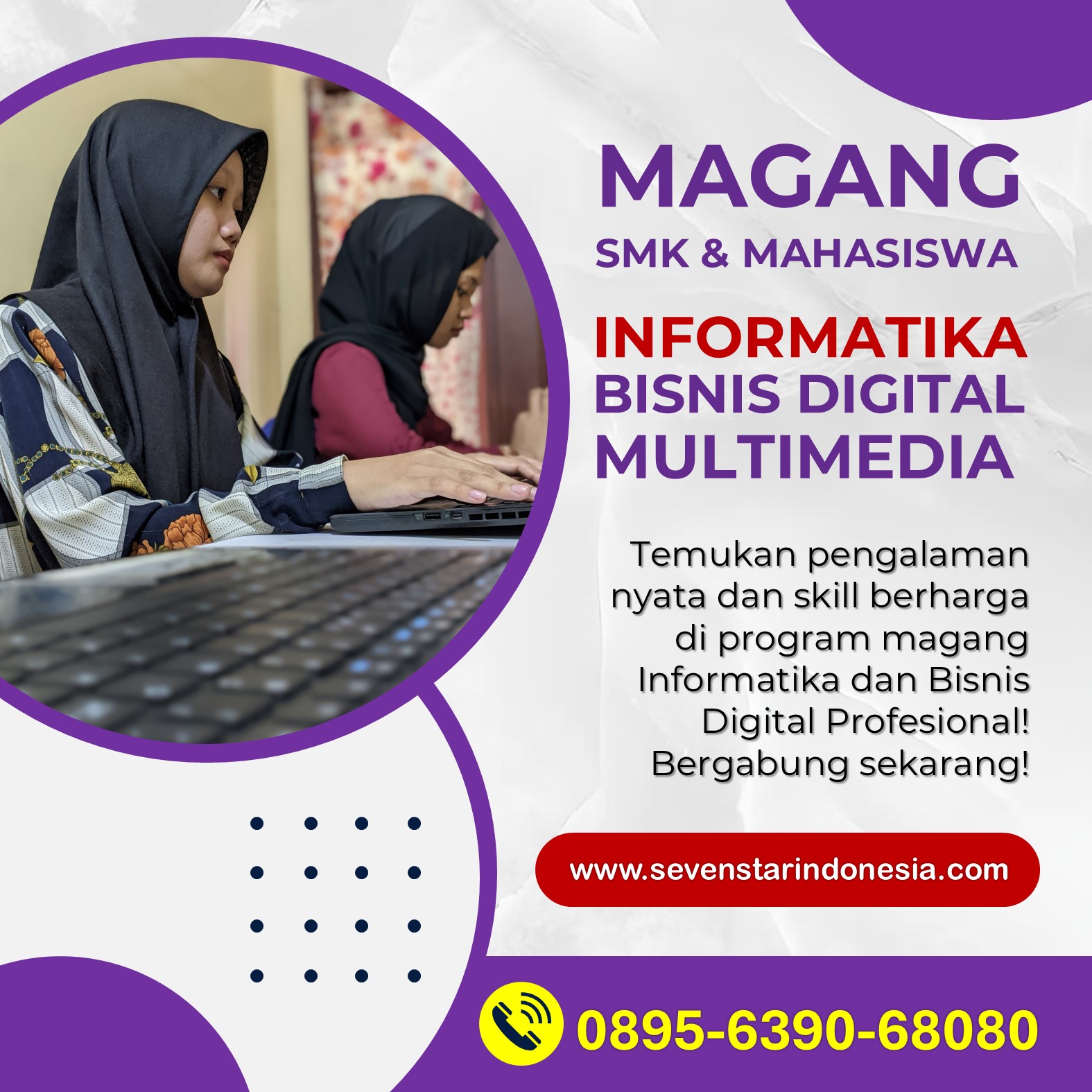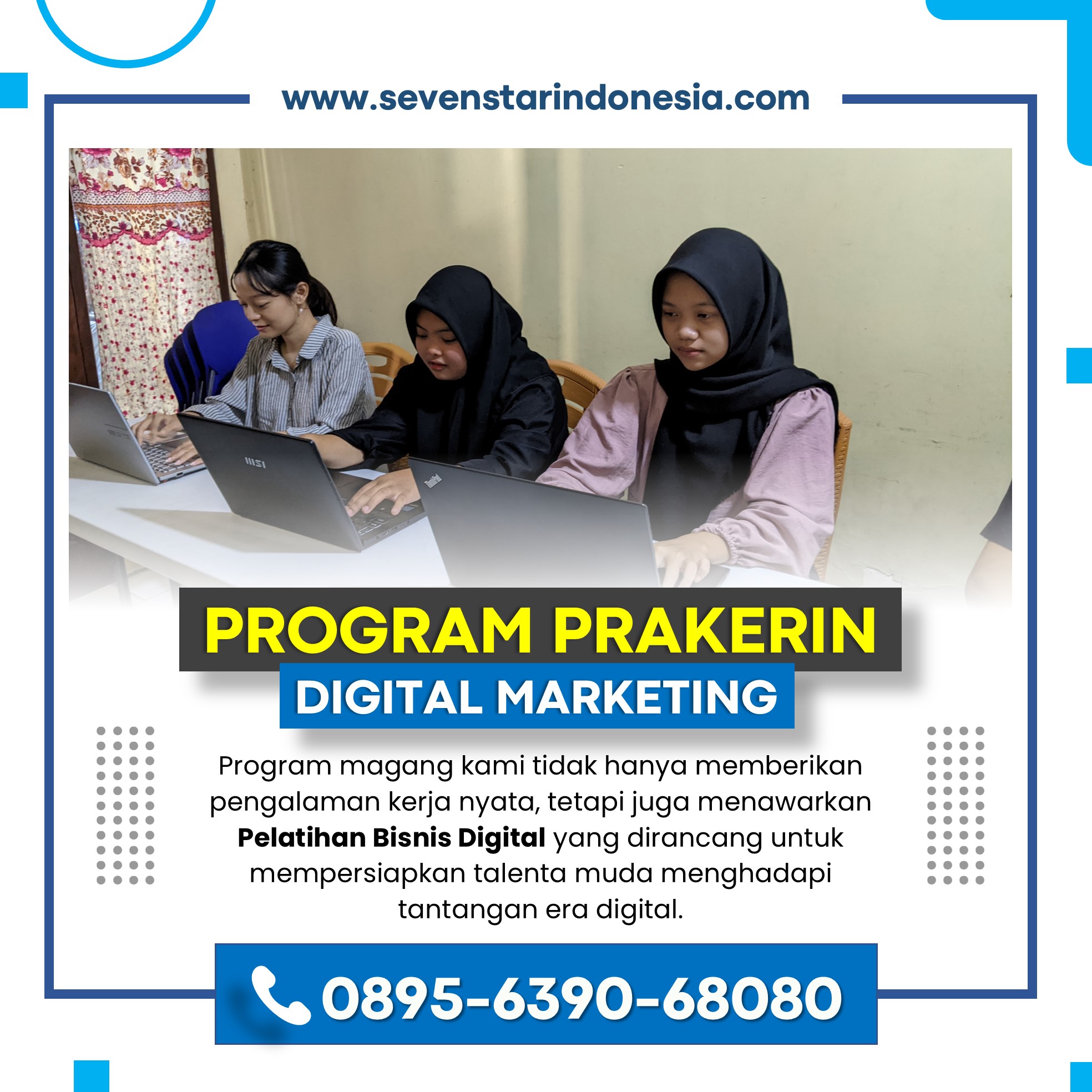 Jika kamu tertarik untuk memulai perjalanan karier di dunia bisnis digital, jangan ragu untuk hubungi 0895-6390-68080. Dapatkan informasi lebih lanjut tentang peluang magang yang tersedia di Sevenstar Digital ID dan temukan program prakerin yang sesuai dengan minat dan tujuan kariermu. Jangan lewatkan kesempatan untuk mengasah keterampilan dan menambah pengalaman berharga yang akan membuka banyak pintu peluang di masa depan.