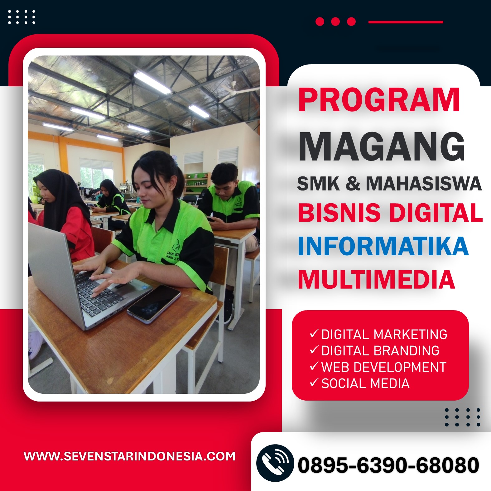Prakerin bukan sekadar syarat kelulusan, tetapi juga kesempatan untuk menunjukkan kemampuan Anda di dunia nyata. Pilih tempat yang mampu membuka peluang karier sejak dini. Untuk pendaftaran dan pertanyaan lebih lanjut, hubungi 0895-6390-68080. Wujudkan impian kariermu dengan pengalaman berharga dari Sevenstar Digital ID, tempat prakerin terbaik di Malang.