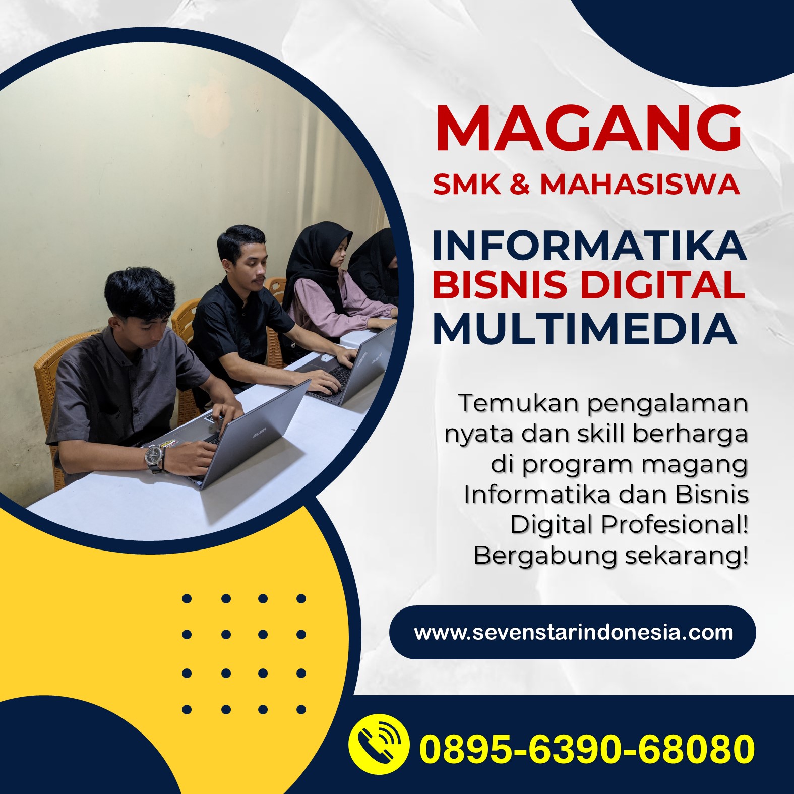 WA 0895-6390-68080, Mahasiswa jurusan Informatika yang ingin mendapatkan pengalaman nyata di dunia kerja dapat memilih berbagai tempat prakerin jurusan Informatika di Malang yang menawarkan pelatihan intensif dalam bidang pemrograman, pengelolaan basis data, serta pengembangan perangkat lunak. Salah satu penyedia magang yang direkomendasikan adalah Sevenstar Digital ID, yang memiliki lingkungan kerja inovatif dan proyek berbasis industri.