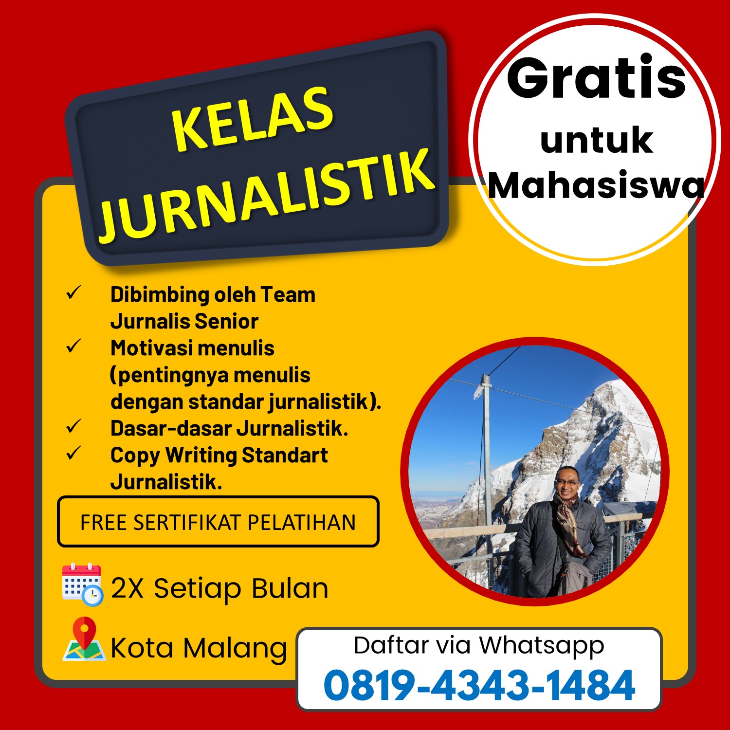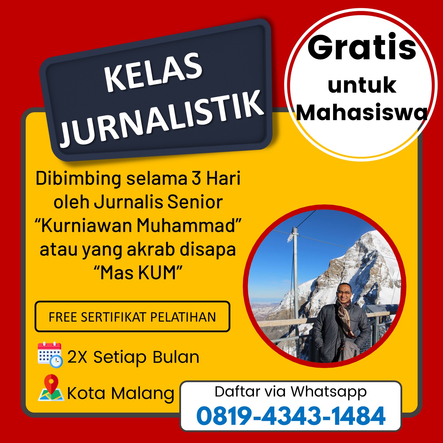 Bagi mahasiswa yang tertarik untuk memperkaya diri dengan keterampilan jurnalistik, hubungi 0819-4343-1484 untuk informasi lebih lanjut dan pendaftaran. Jangan lewatkan kesempatan berharga ini, karena workshop ini akan memberikan bekal pengetahuan yang berguna untuk menembus dunia jurnalistik dengan penuh kepercayaan diri.