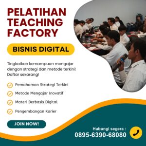 Ikuti workshop teaching factory di Malang. Pengalaman langsung yang memperkuat keterampilan Anda. Dengan pelatihan berbasis pengalaman langsung ini, Anda tidak hanya akan memperoleh teori, tetapi juga keterampilan praktis yang dapat langsung digunakan dalam pengajaran maupun dalam pengembangan karier profesional Anda.